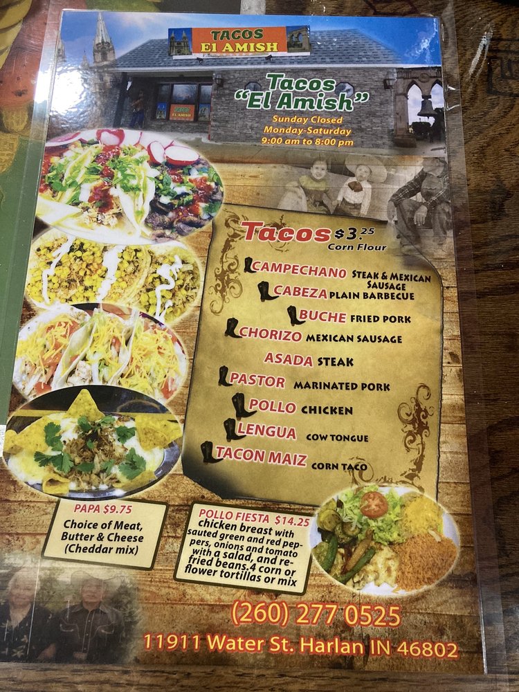 Nestled in Harlan, Indiana, Tacos El Amish promises a vibrant culinary journey steeped in authentic Mexican flavors. This unique establishment offers an extensive taco menu that is anything but ordinary. Guests rave about the fresh guacamole, made tableside, and the standout pastor tacos that keep bringing patrons back for more.